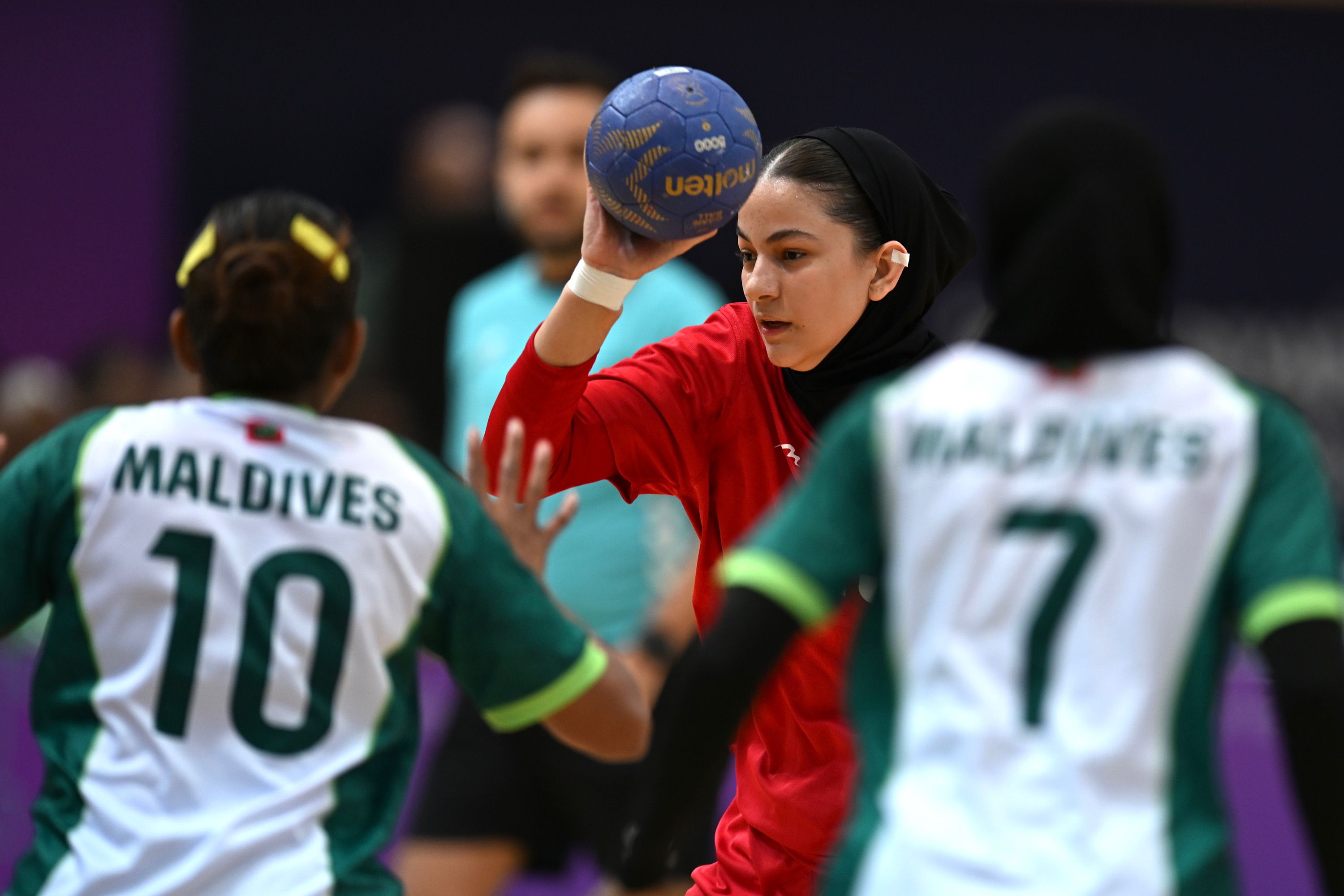 ششمین دوره بازیهای همبستگی کشورهای اسلامی - ریاض؛ تیم ملی هندبال بانوان ایران - تیم ملی هندبال بانوان مالدیو/ عکس